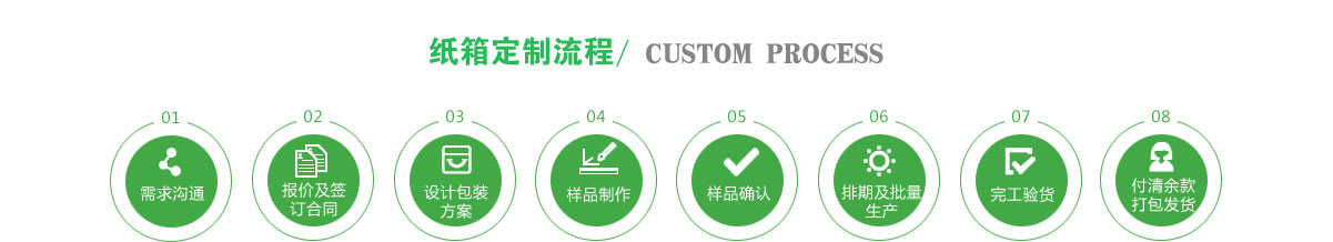 全自动进口机器机械化生产,充分保证大批量供货需求,确保客户下单后及时发货!工厂针对纸箱定制加工拥有多年丰富经验。可根据客户的需求,为客户提供全方位的个性定制。